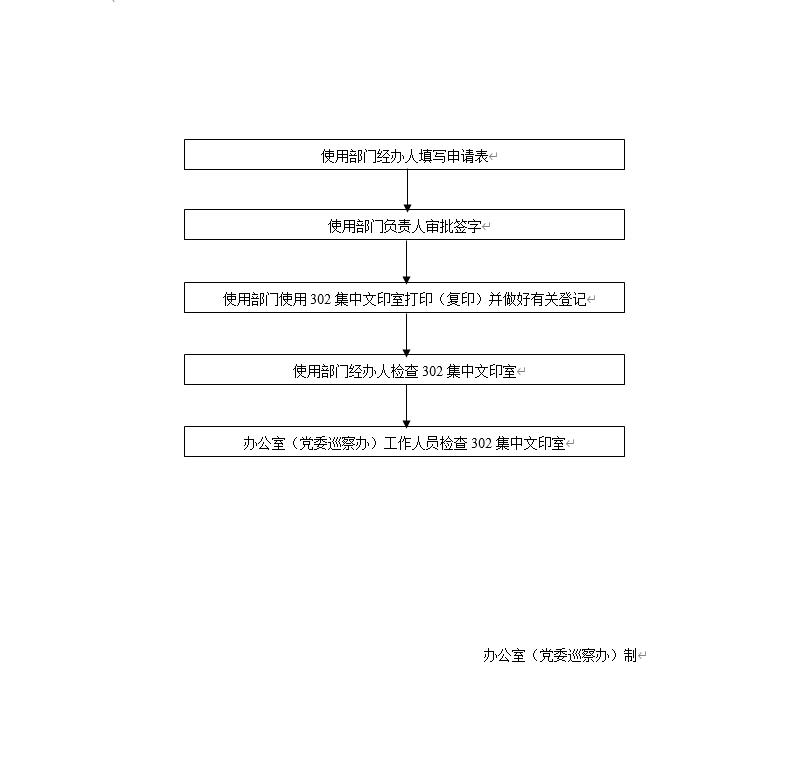 4.1 使用部门经办人提前填写《302集中文印室打印(复印)使用申请表》(纸质),由部门负责人签字审批后送到办公室(党委巡察办)申请报备。