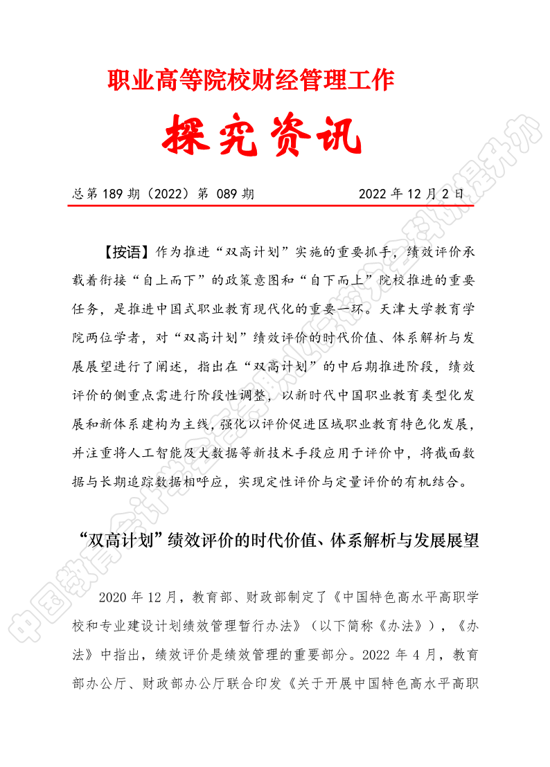 探究资讯:“双高计划”绩效评价的时代价值、体系解析与发展展望