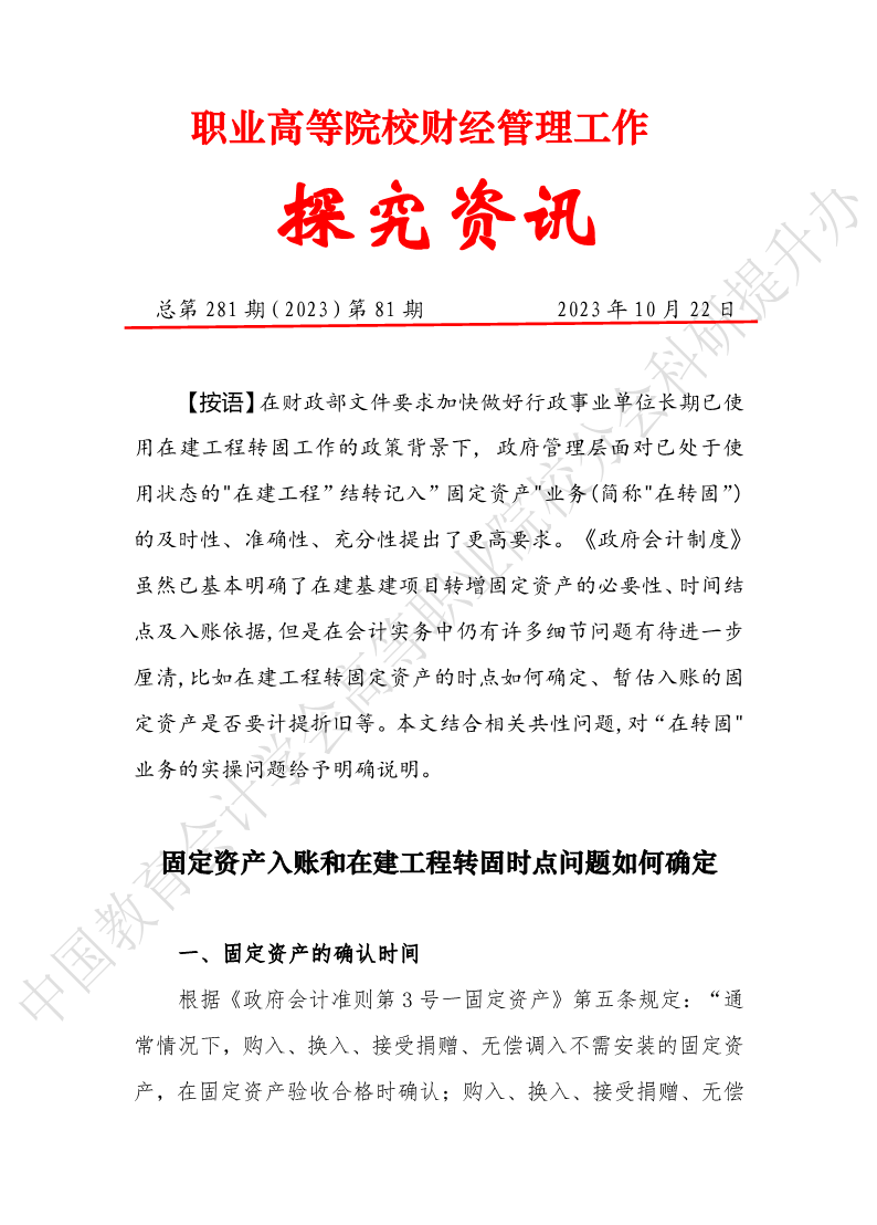 探究资讯281:固定资产入账和在建工程转固时点问题如何确定