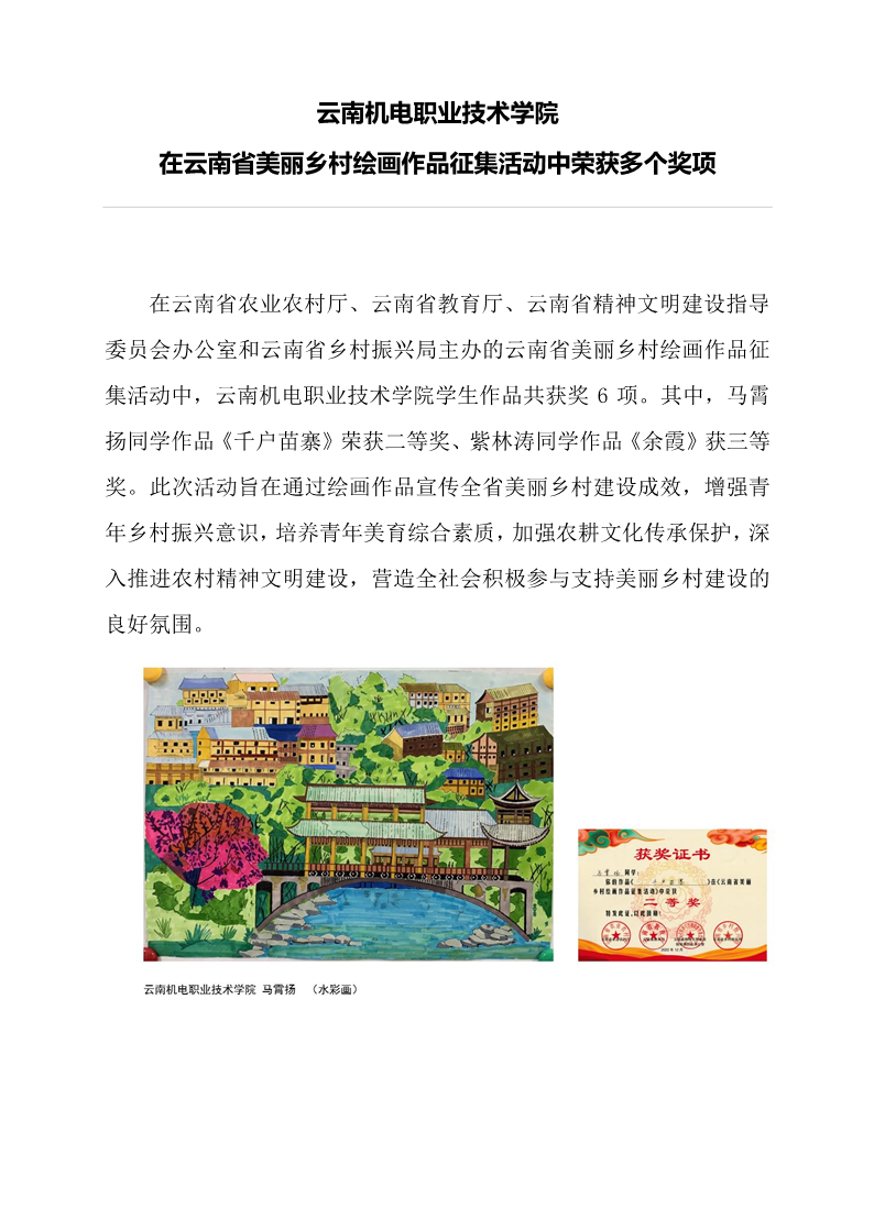 喜报:开云集团官网_开云集团(中国)在云南省美丽乡村绘画作品征集活动中荣获多个奖项 来源: 发布时间:2023-05-18 16:20:33 浏览次数: 次 【字体:小 大】 终审:杨曼云 分享到: 【打印正文】