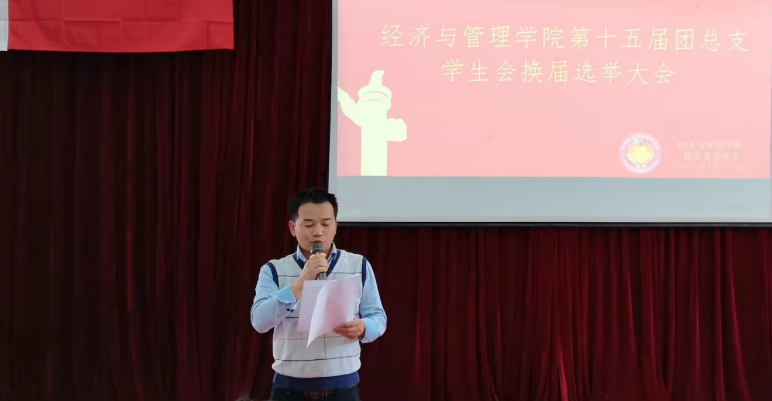 10月27日中午,经济与管理学院团总支、学生会第十五次学生代表大会顺利召开。学院党总支副书记文世敏、团总支书记阮智君、学管干事董博、就业干事向敏、专职辅导员钟怀滴和250名学生代表参会。各二级学院团总支、学生会负责人及学生代表应邀参与。