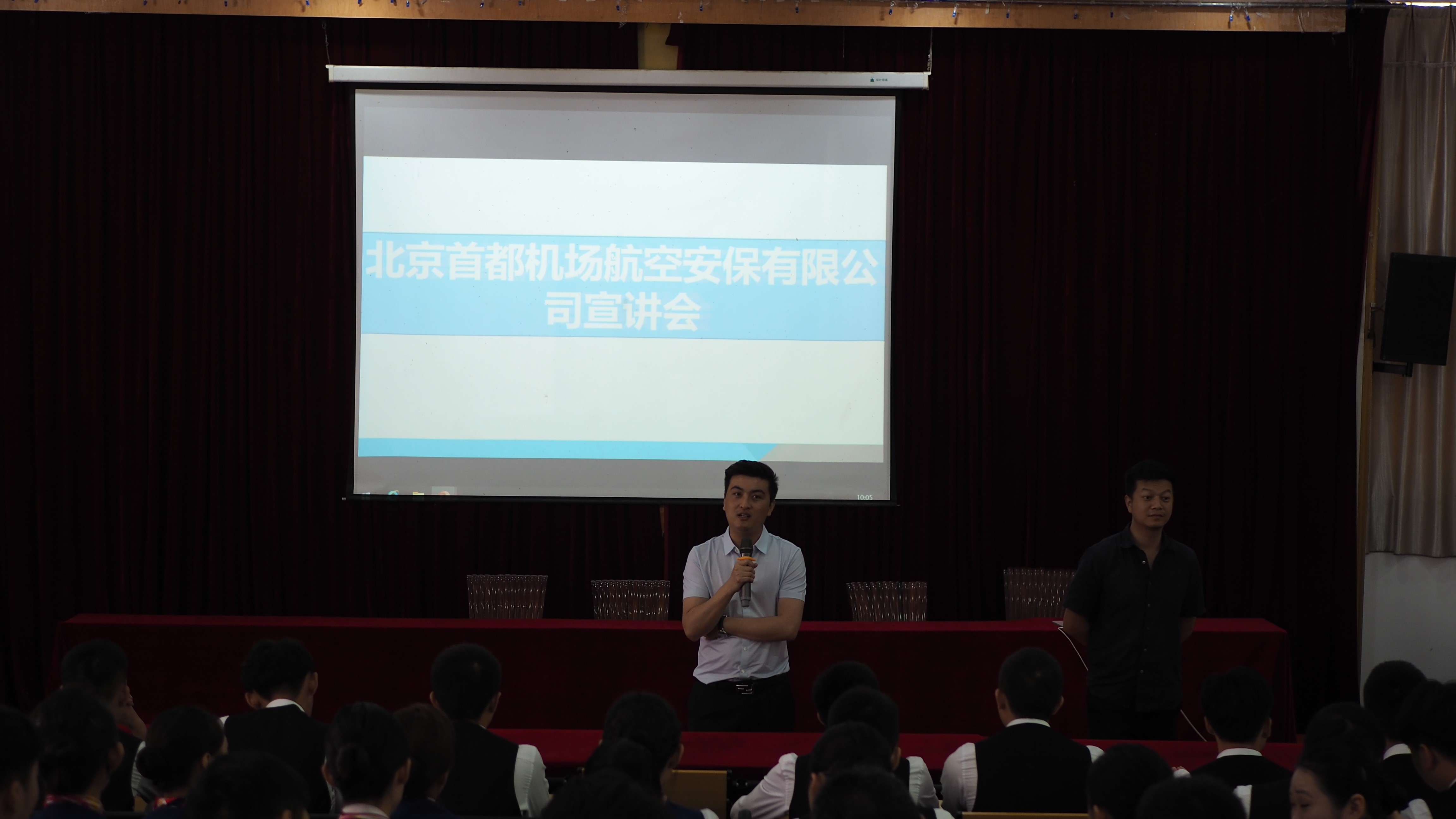 来自北京首都机场航空安保有限公司的领导为我校准备了PPT以及视频等多种形式的向经济与管理学院民航运输19级的同学介绍公司,由此可以看出公司方对此次面试活动的重视,在简短的介绍后便以问答的形式回答同学们提出的疑惑和问题。通过简短的问答可以表现出公司方人员的专业性,也体现出民航运输学子热情与积极。
