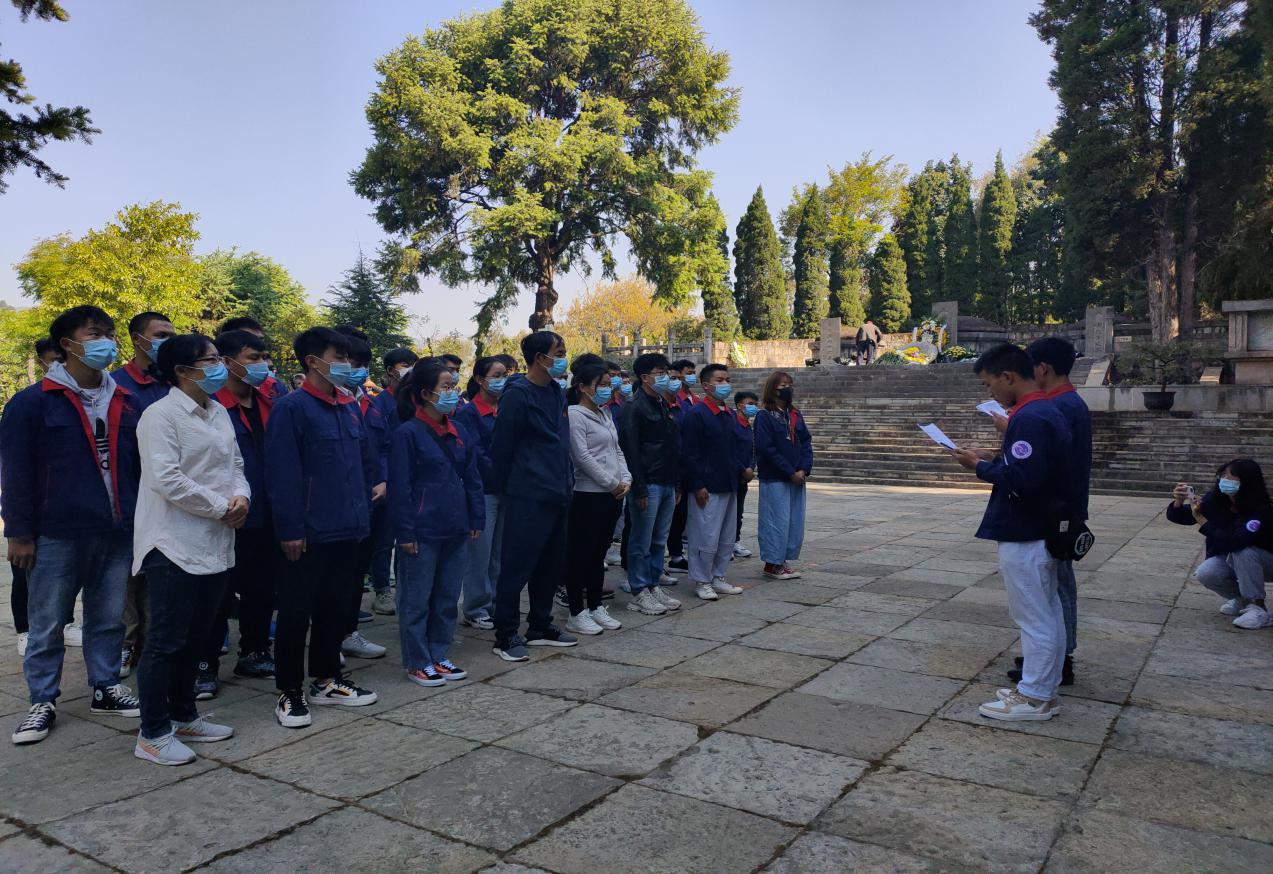 春风送花表哀思,青松滴雾寄深情。为缅怀革命先烈,加强党史学习教育和革命传统教育,2021年4月3日上午九点,机械工程学院第二党支部党员教师、19级发展对象及20级入党积极分子前往昆明黑龙潭革命烈士陵园开展“学党史 扫墓祭英烈”活动。此次活动全程由支部入党学生策划和筹备,朱成丽、杨昊然、杨晓河三位同学主导活动流程,19级骨干成员成立应急小组配合开展工作。