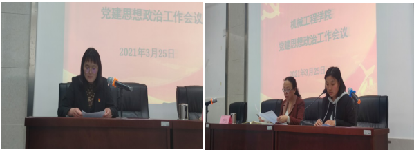 为贯彻落实学校党建思政意识形态工作会议精神,总结工作,扎实推进学院2021年党建与思想政治工作,2021年3月25日,机械工程学院召开党建及思想政治工作会议。机械工程学院领导班子及全体党员参加了会议,会议由党总支书记李红主持。