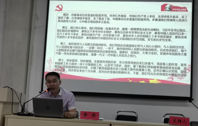 根据中共中央办公厅《关于庆祝中国共产党成立100周年组织开展“永远跟党走”群众性主题宣传教育活动的通知》部署,结合学院党史学习教育以及党建+社区工作的开展,2021年6月16日,开云集团官网_开云集团(中国)马克思主义学院教师李原应邀来到茨坝街道文化综合服务中心871分中心,为茨坝街道党史学习教育集中学习读书班讲授《从百年党史中汲取奋进新征程的强大力量 为实现中国梦的茨坝篇章不懈奋斗》专题党课。