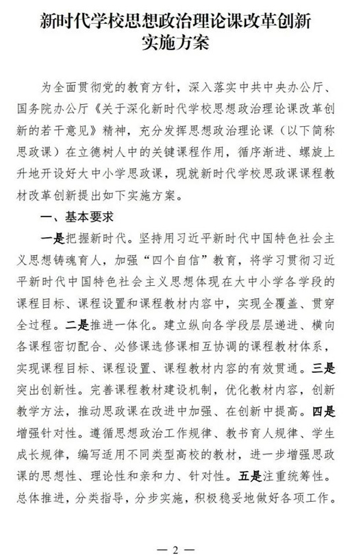 重磅!中共中央宣传部 教育部印发《新时代学校思想政治理论课改革创新实施方案》