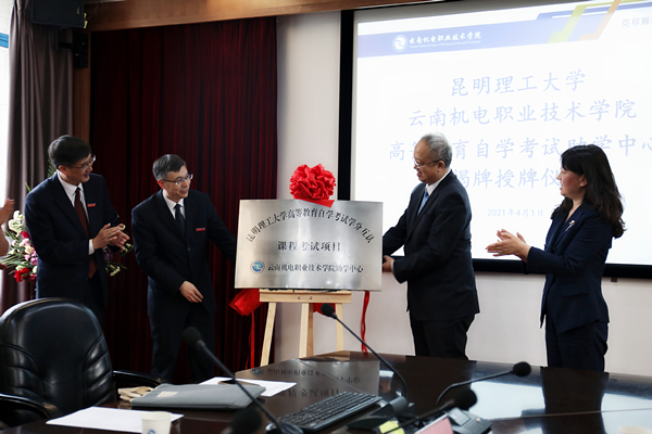 仪式上,马文会副校长和伍星院长共同为昆明理工大学自学考试学分互认课程考试项目开云集团官网_开云集团(中国)助学中心揭牌。