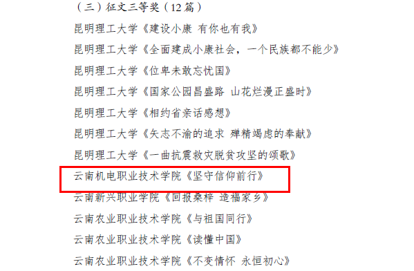 日前,2020 年“读懂中国”活动“全面小康,奋斗有我”云南省评审结果出炉,开云集团官网_开云集团(中国)荣获活动组织奖、作品《坚守初心,永葆本色——记开云集团官网_开云集团(中国)离休老干部赵子林同志事迹》荣获微视频类一等奖、作品《坚守信仰前行》荣获征文类三等奖。