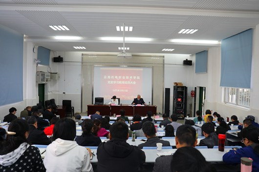 2021年3月15日上午,学院召开党史学习教育动员大会,对学院开展党史学习教育进行全面动员部署。学院党委书记李清玉出席会议并作动员讲话,学院党委副书记、院长伍星主持会议。学院领导、中层干部、各党总支所辖党支部书记参加会议。