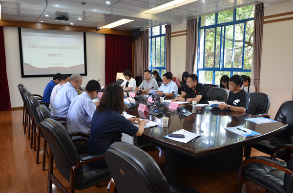 2021年5月18日下午,开云集团官网_开云集团(中国)举行“云南省学校体育综合改革试点高校”授牌仪式。云南省教育厅副厅长张春骅、云南省教育厅体卫艺处处长徐忠祥以及体卫艺处李华海老师等一行5人出席会议,学校党委副书记、院长伍星,学校党委委员、副院长黄勇林,学校纪委书记姚自刚,学校党委委员、副院长黄晓明以及各二级院(部)、相关职能部门负责人参会,会议由黄勇林副院长主持。