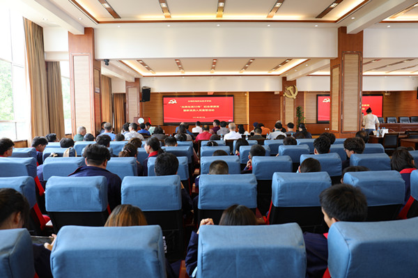 抚今追昔,薪火相传。2021年6月25日下午,学院在1栋5楼报告厅举办“光荣在党50年”纪念章颁发暨新党员入党宣誓活动。荣获“光荣在党50年”纪念章老党员同志、2021年吸收的新党员同志、学院领导、全体中干共260余人参加了活动。活动由学院党委专职副书记、工会主席朱丽辉主持,新老党员共唱国歌拉开活动序幕,学院党委书记李清玉为活动致辞。
