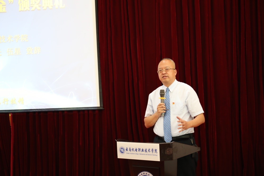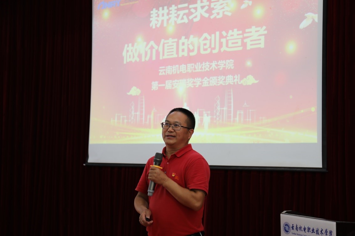 为表彰在学习中积极进取、坚持不懈、勇于奋进的同学们,在教师岗位上默默无闻、辛勤奔波、甘于奉献的老师们,开辟人才培养的多元化渠道,培养德、智、体、美、劳全面发展的社会主义建设者和接班人,学院于2021年7月7日下午15点在一栋阶梯教室隆重举行首届“安瑞奖学金”颁奖典礼。学院党委副书记、院长伍星,党委委员、副院长黄勇林,云南安瑞机电设备技术开发有限公司董事长、总经理王正安,学生处处长杨健,机械工程学院党总支书记李红,电气工程学院党总支书记李斌华,交通工程学院党总支书记严学新,云南安瑞机电设备技术开发有限公司配件技术销售主管田云、人事主管王丽娜,以及获奖的老师和同学们参加了此次颁奖典礼。