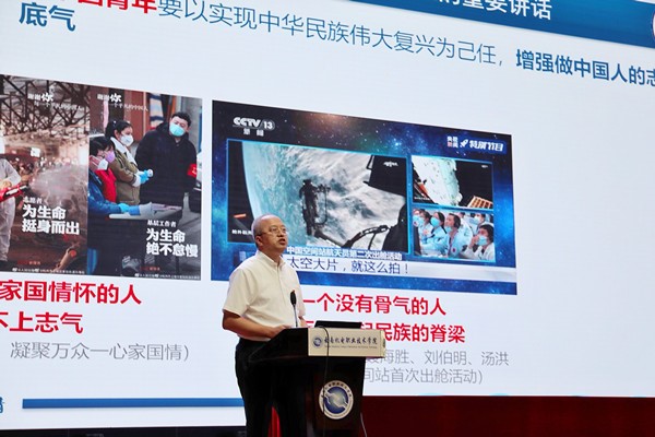伍星院长以“不负时代不负韶华勇于担当”为题,把学习贯彻习近平总书记在庆祝中国共产党成立100周年大会上的重要讲话精神和重温“七一”庆祝大会盛况作为主要内容,围绕“人生选择、两个问题、四点建议、未来可期”四个方面为全体新生讲授开学第一课。伍院长向新生介绍学院发展历程、办学情况及在实习实训、技能竞赛、技术技能人才培养方面取得的成绩,为同学们选择开云集团官网_开云集团(中国)、选择职业教育感到骄傲、自豪。他给同学提出“为什么要读大学、什么是最高学历”两个问题,引导同学们认识大学,理解“人品是一个人的最高学历”。伍星院长表示,大学是百炼成钢之地,面对人生新征程,同学们要栉风沐雨,砥砺前行。希望同学们“志存高远、脚踏实地;追求极致、精益求精;从己做起、从小做起;心怀国家、心怀天下”。伍院长讲述了我校离休干部、战斗英雄赵子林同志,我校毕业生、“云岭楷模”王秋婷的先进事迹,用身边的榜样引导学生树立正确的人生观、价值观,把实现个人价值同党和国家的前途命运紧紧联系在一起。以在平凡岗位,追求职业技能完美的“大国工匠”案例,激励同学们怀匠心、践匠行、做匠人,建功立业新时代、潜心筑梦砥砺前行。在国家层面、省级层面,职业教育都备受重视,有着良好的发展平台与机遇,前途广阔、大有可为。未来掌握在自己手中,同学们要以坚持奋斗、只争朝夕、不负韶华的姿态,勇攀云南先进制造业高峰!