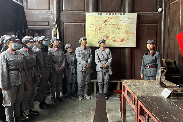 在参观完 “鸡鸣三省”纪念碑后,学员们来到了威信县水田镇水田村三合头关口坳,一起深情朗诵毛泽东同志的《七律·长征》,重走了红军在扎西走过的长征路,体会老一辈无产阶级革命家的艰辛与不易,以及今天幸福生活的来之不易。