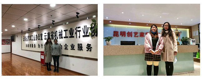本次巡访的企业主要包括:昆明创艺家营销策划有限公司、昆明市五华区绘象堂艺术培训学校有限公司、云南彝源农牧开发有限公司、云南吉飞装饰工程有限公司、盘州市居立方装饰设计工程有限公司、昆明市五华区志在教育培训学校有限公司、云南创艺装饰工程(集团)有限公司、昆明生活家装饰工程有限公司、鼎创喷画、四川鸿宝装饰工程有限公司、超友科技、云南品位捌柒壹文化科技有限公司、武定佳誉进出口贸易有限公司昆明分公司、云南涵威档案科技印务工贸有限公司、云南教育管理培训学院、云南幸福时光文化传媒有限公司、云南码谷信息技术有限公司、昆明贤邦科技有限公司等。