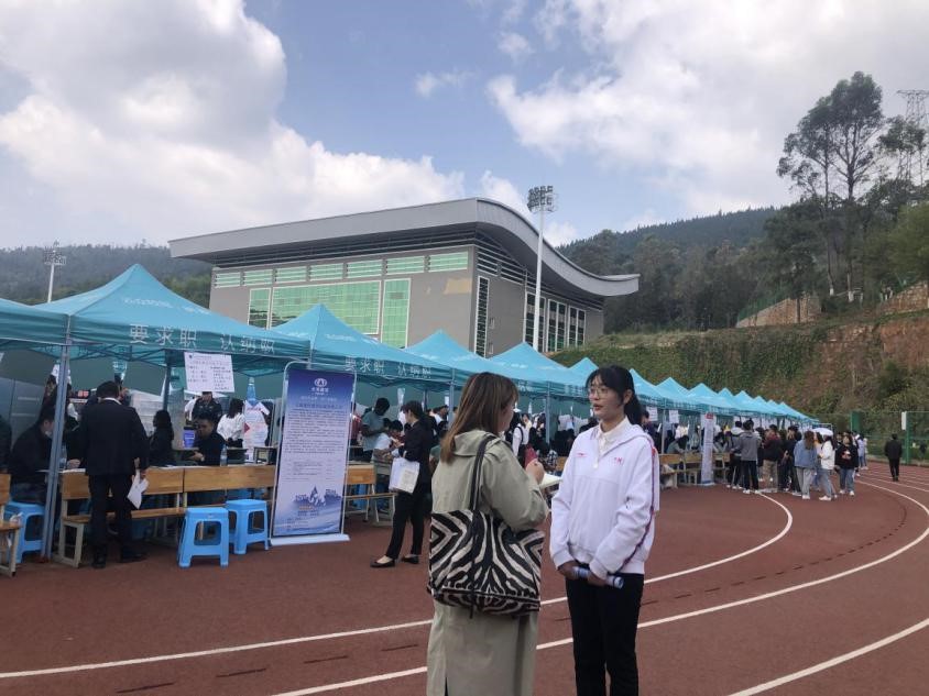 为全面贯彻落实党中央、国务院和省委、省政府,教育工委、关于“稳就业”“保就业”决策部署,扎实做好“六稳六保”,更好推进信息工程学院2021届毕业生就业工作,信息工程学院党总支、全体教师始终将2021届毕业生就业工作摆在首位。2021年4月19日上午,开云集团官网_开云集团(中国)在足球场举行了主要针对专升本考试结束后,未就业毕业生双向选择洽谈会,我院积极邀请相关企业、组织未就业学生参加,我院党总支王有全书记、杨敏副院长带领招就干事、毕业班辅导员现场指导学生了解就业岗位,对接用人单位需求,用心用情做好学生就业服务工作。