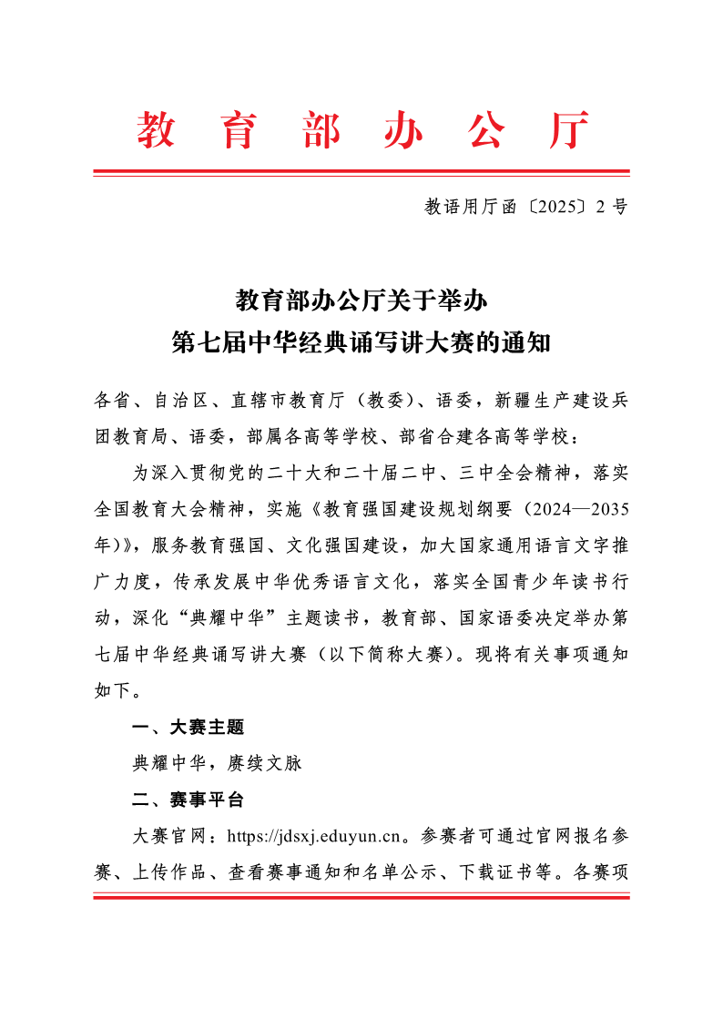 教育部办公厅关于举办第七届中华经典诵写讲大赛的通知