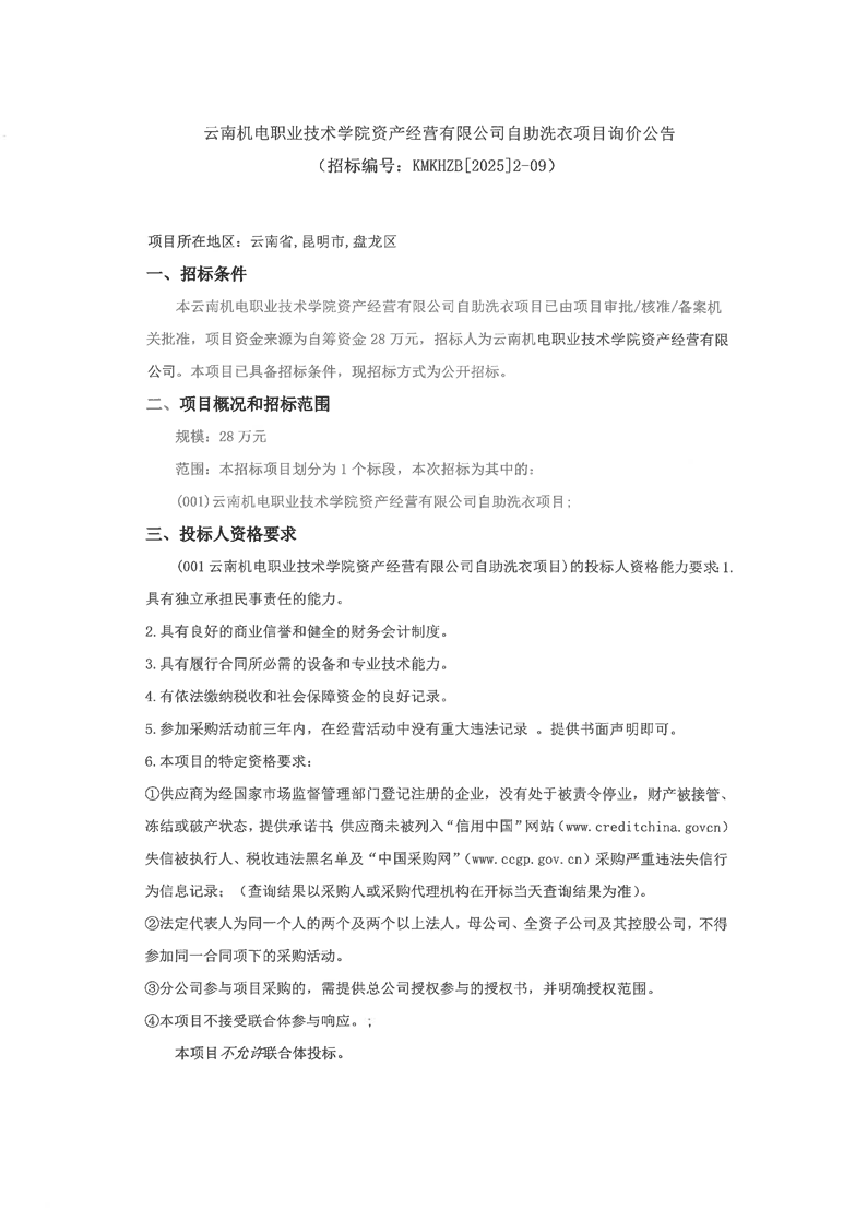 开云集团官网_开云集团(中国)资产经营有限公司自助洗衣项目询价公告