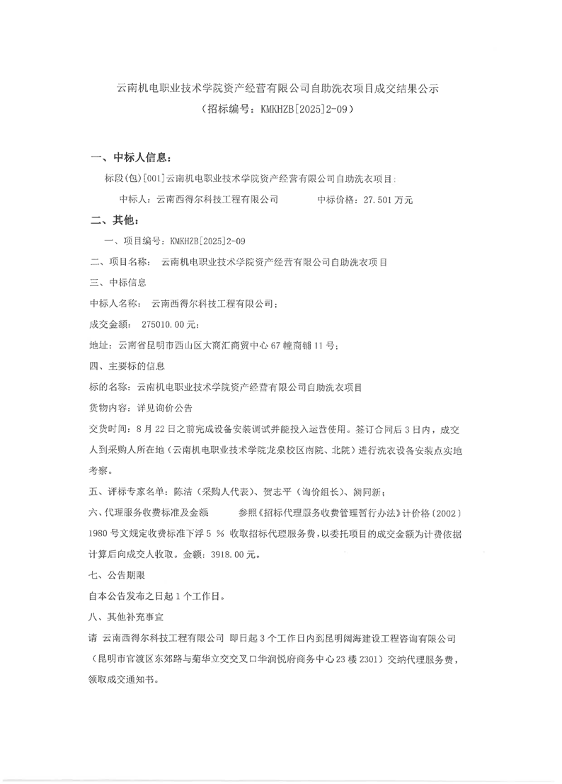 开云集团官网_开云集团(中国)资产经营有限公司自助洗衣项目成交结果公示
