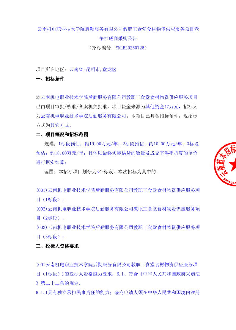 开云集团官网_开云集团(中国)后勤服务有限公司教职工食堂食材物资供应服务项目竞争性磋商采购公告 来源: 发布时间:2025-08-06 15:03:09 浏览次数: 次 【字体:小 大】 终审:罗柱 分享到: 【打印正文】